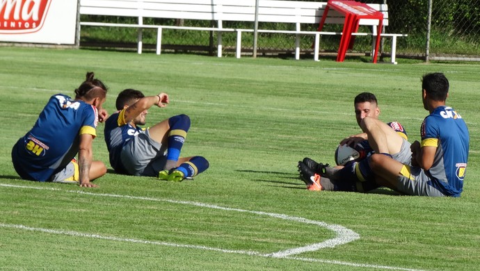 Rafael Sobis, Arrascaeta, Thiago Neves e Robinho conversam em um dos campos da Toca II (Foto: Marco Antônio Astoni)