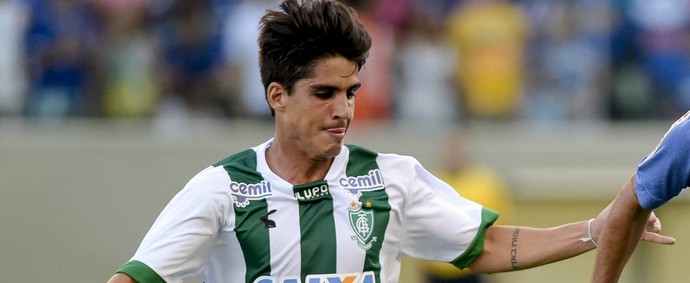Gustavo Blanco e o novo uniforme 3 do América-MG (Foto: Washington Alves/Light Press)