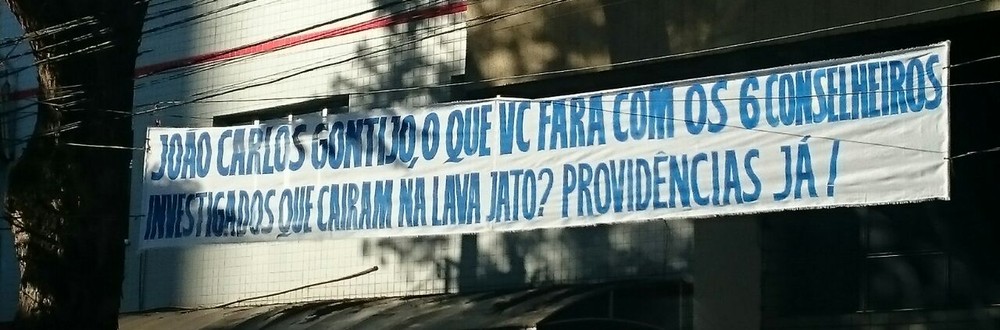 Faixa pedindo suspensão de conselheiros investigados na Operação Lava-Jato (Foto: Arquivo pessoal)