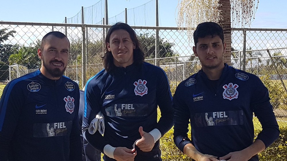 Goleiros do líder Corinthians treinaram na Toca da Raposa II nesta quarta-feira (Foto: Marco Antônio Astoni)
