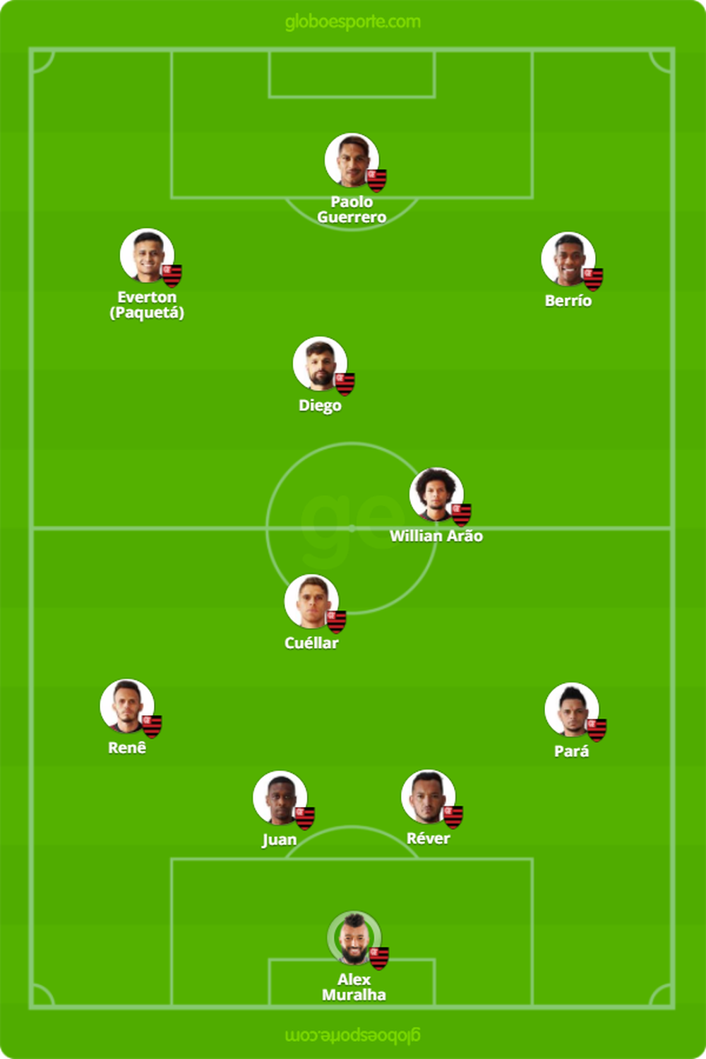 Mano Menezes garantiu apenas um jogador em campo: Alisson. Recuperado de lesão no joelho, o meia será titular. Apesar do mistério em relação ao restante do time, a coerência pregada pelo técnico indica que Ezequiel será mantido na lateral direita, e Raniel será titular no ataque. Arrascaeta e Lucas Romero, importantíssimos para o elenco, devem ficar no banco.