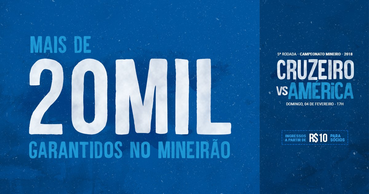 Virou rotina algum termo relacionado ao Cruzeiro surgir entre os assuntos mais comentados do Twitter. Nesta segunda-feira, a torcida celeste criou a campanha “#50MilNaToca3” e alcançou o topo dos trending toppics do Brasil. Minutos depois, a diretoria do clube informou que 20 mil já garantiram presença no clássico diante do América, marcado para o próximo domingo, às 17h, no Mineirão, pela quinta rodada do Campeonato Mineiro. Esse foi o primeiro dia da venda antecipada para o duelo.