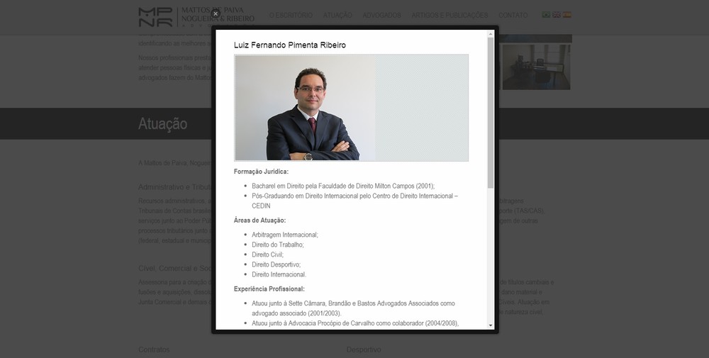 Currículo de Luiz Fernando Pimenta Ribeiro (Foto: Reprodução/Site da Mattos de Paiva Nogueira & Ribeiro Advogados)