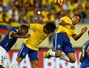 Ricardo Goulart (com Marquinhos) foi testado contra o Equador, segundo amistoso (Foto: AFP)