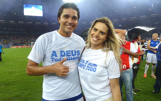 Marcelo Moreno comemora o título do Campeonato Brasileiro ao lado da esposa (Foto: Carlos Mota)