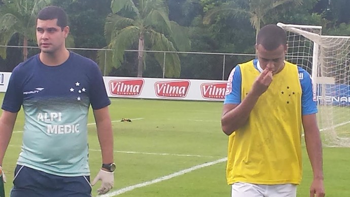 Choque entre Mayke e Neilton interrompeu parte do treinamento do Cruzeiro (Foto: Tayrane Corrêa)