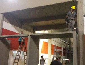 Funcionários do estádio fazem últimos reparos no estádio Monumental de Nuñez (Foto: Marco Antônio Astoni)