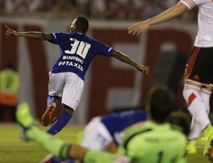 Marquinhos comemora gol do Cruzeiro na vitória sobre o River Plate, em Buenos Aires (Foto: AP)