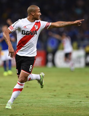 Sánchez comemora gol do River Plate sobre o Cruzeiro no Mineirão (Foto: Andre Penner/AP)