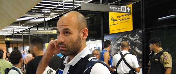 Bruno Rodrigo parou para atender a imprensa e os torcedores em Confins (Foto: Lucas Borges)