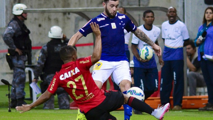 Mena disputa bola com Samuel Xavier no empate entre Sport e Cruzeiro (Foto: Anderson Stevens/Light Press)