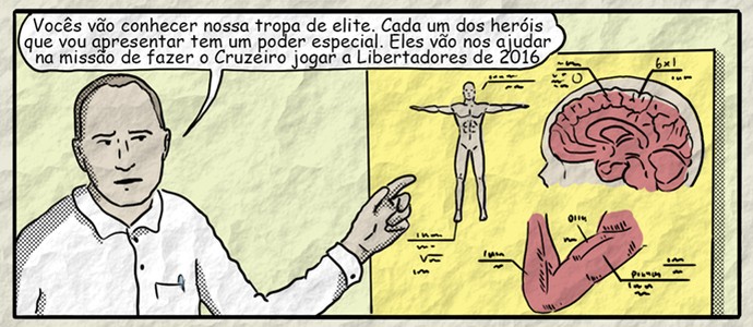 A missão cruzeirense de disputar a Taça Libertadores de 2016 é digna de super-heróis. O caminho é difícil e cheio de obstáculos, já que, para conquistar o objetivo, o Cruzeiro precisa vencer os cinco jogos que restam e torcer por tropeços dos adversários - como Santos, São Paulo, Internacional, Ponte Preta, Sport e Palmeiras. Na matemática, há apenas 1% de chance de alcançar o objetivo. Os comandantes da Nação Azul recrutaram uma tropa de elite, que vão usar seus superpoderes para fazer com que o time dispute a maior competição de clubes sul-americana no ano que vem. O GloboEsporte.com conta esta saga de aventura, numa história em 12 quadrinhos, repletos de emoção.