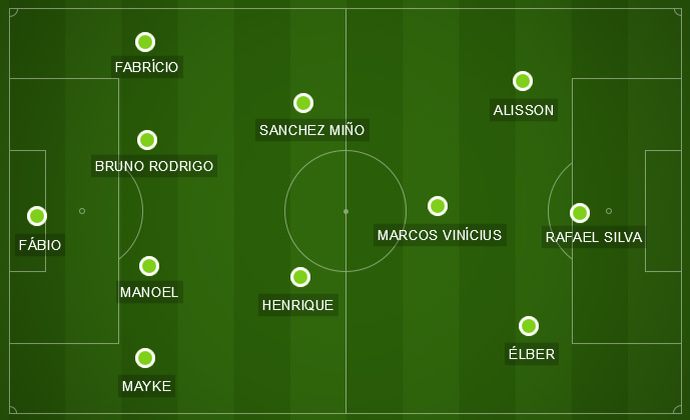 As mudanças de Deivid, no intervalo, entretanto, fizeram o Cruzeiro finalmente, jogar bem neste Campeonato Mineiro. O 4-2-3-1 se transformou num 4-3-3. A dupla de volantes virou um trio de meio de campo. Os integrantes foram os volantes Henrique e Sánchez Miño, que foi recuado, e Marcos Vinícius. Cabral deixou o jogo. O quarteto de frente – três armadores e um atacante – virou um trio. Alisson passou da direita pela esquerda. Élber assumiu a antiga posição de Alisson, e Rafael Silva permaneceu centralizado. A excelente entrada de Marcos Vinícius fez com que Alisson crescesse em campo. Sánchez Miño também se destacou, e Élber teve bons momentos. Com o novo esquema (confira no campinho abaixo), as peças funcionaram melhor, tanto que a virada do Cruzeiro saiu naturalmente.
