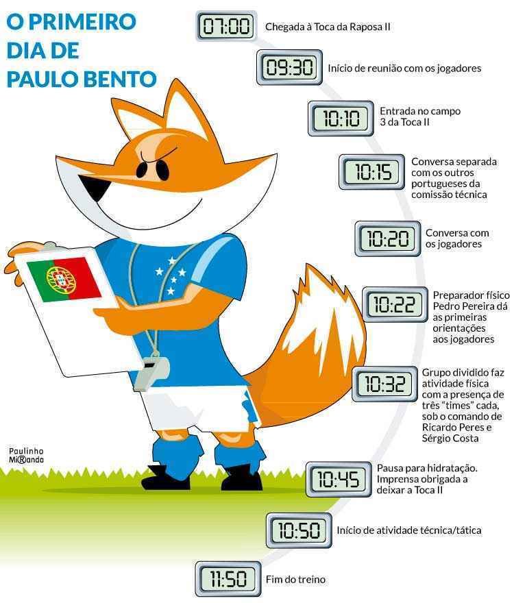 Logo no primeiro dia de trabalho em campo, Paulo Bento começou a mostrar seu estilo na Toca da Raposa.