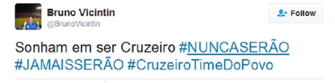 Bruno Vicintin provocou o rival, após a vitória do Cruzeiro no clássico de domingo (Foto: Reprodução/ Twitter)