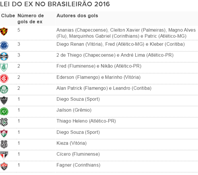 Lei do EX 2016 (Foto: Futdados)<;I>