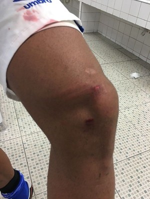 Ábila mostra o joelho machucado por causa da dividida com Cássio (Foto: Cruzeiro/Divulgação)