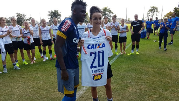 Durante a atividade no centro de treinamento cruzeirense, o meia Marcos Vinícius entregou uma camisa do time mineiro, com o número 20, o mesmo que usa, para a jogadora Lina Magull, que completa 22 anos nesta segunda. A jogadora de meio-campo, que atua no Freiburg-ALE, também usa o número 20 no selecionado alemão.