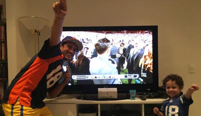 Em fotos divulgadas nas redes sociais, Robinho demonstra a empolgação com o trabalho exercido por Manning. Em uma delas, o jogador do Cruzeiro, ao lado do filho, ostenta a camisa 18, número que marcou a carreira do astro americano. A foto foi tirada no dia da final do último Super Bowl. Manning se aposentou após vencer a NFL da temporada 2015 pelo Denver Broncos. A competição terminou em fevereiro deste ano.