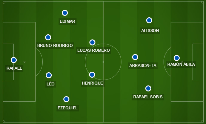 Fábio; Fabiano, Dedé, Manoel e Fabrício; Henrique, Ariel Cabral (Matías Pisano), Sánchez Miño (Elber) e De Arrascaeta; Alisson e Rafael Silva (Vinícius Araújo) Técnico: Deivid. Este foi o Cruzeiro que enfrentou o Fluminense, no dia 16 de fevereiro deste ano, pela Primeira Liga, no Mineirão.